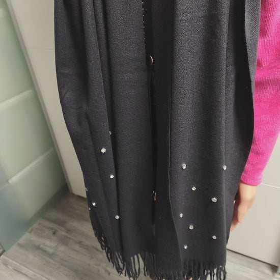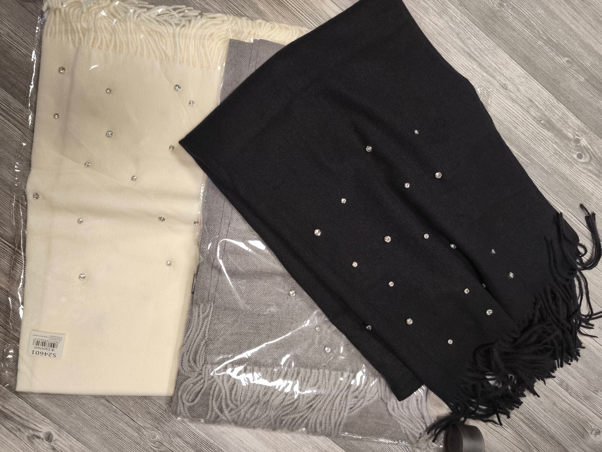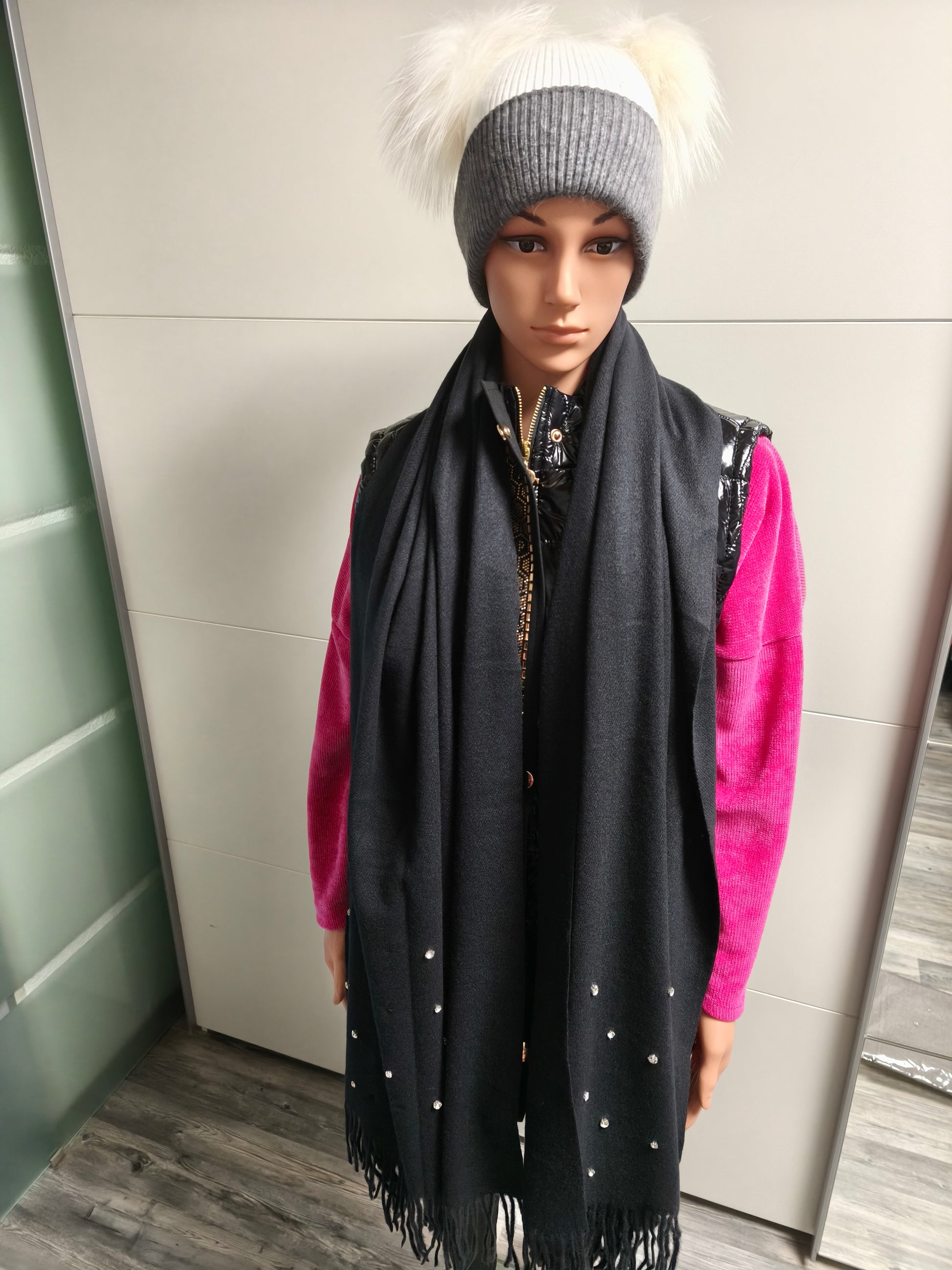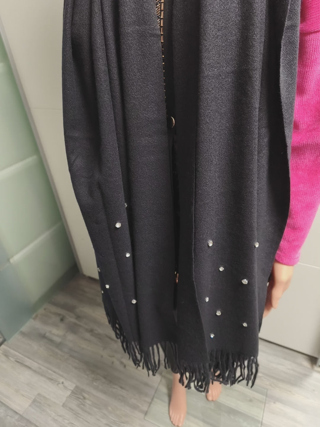 Hier habe ich einen Extra langen und super weichen dank 80% Viskose, Schal , mit aufgesetzten Strasssteinen.