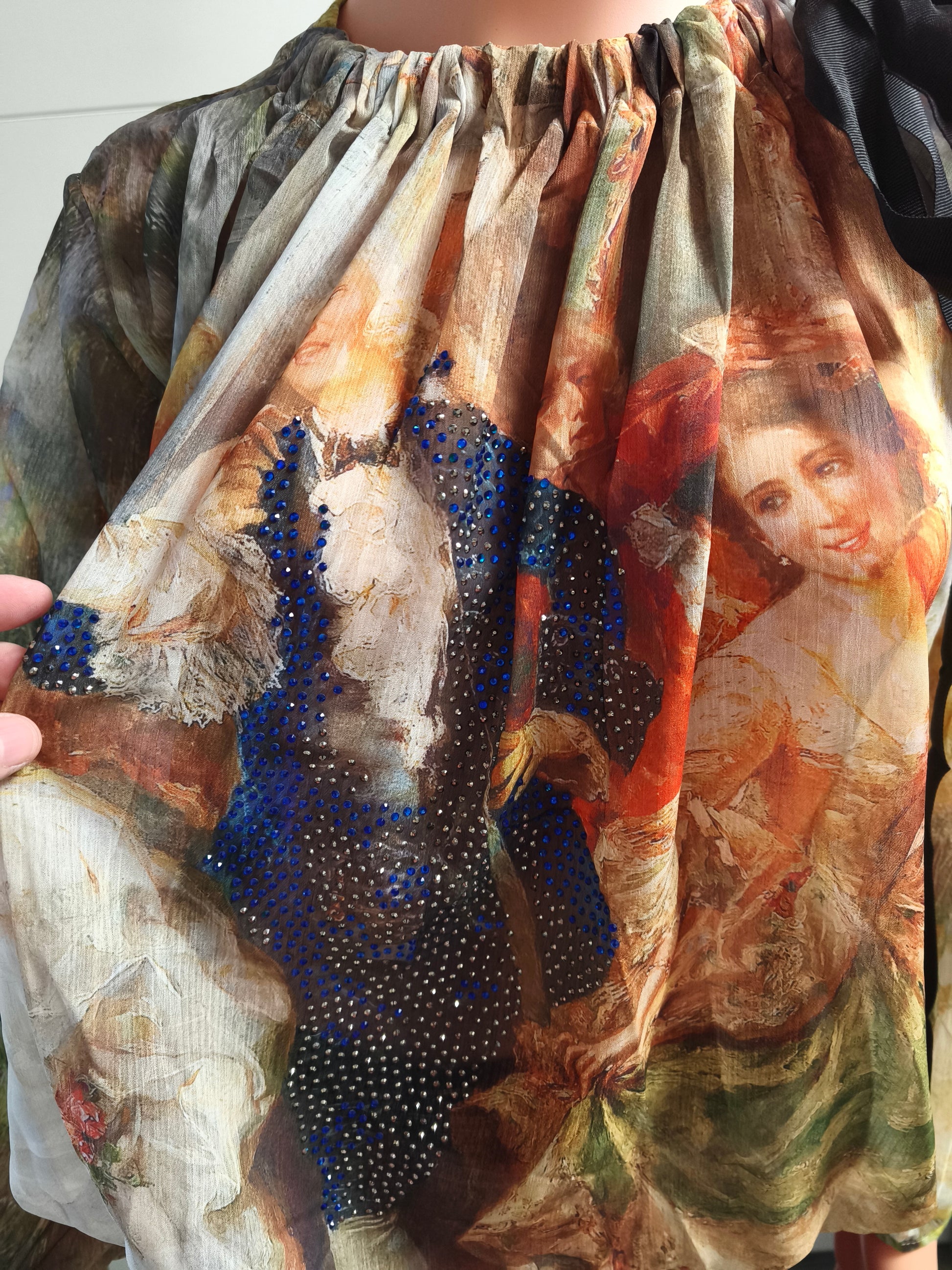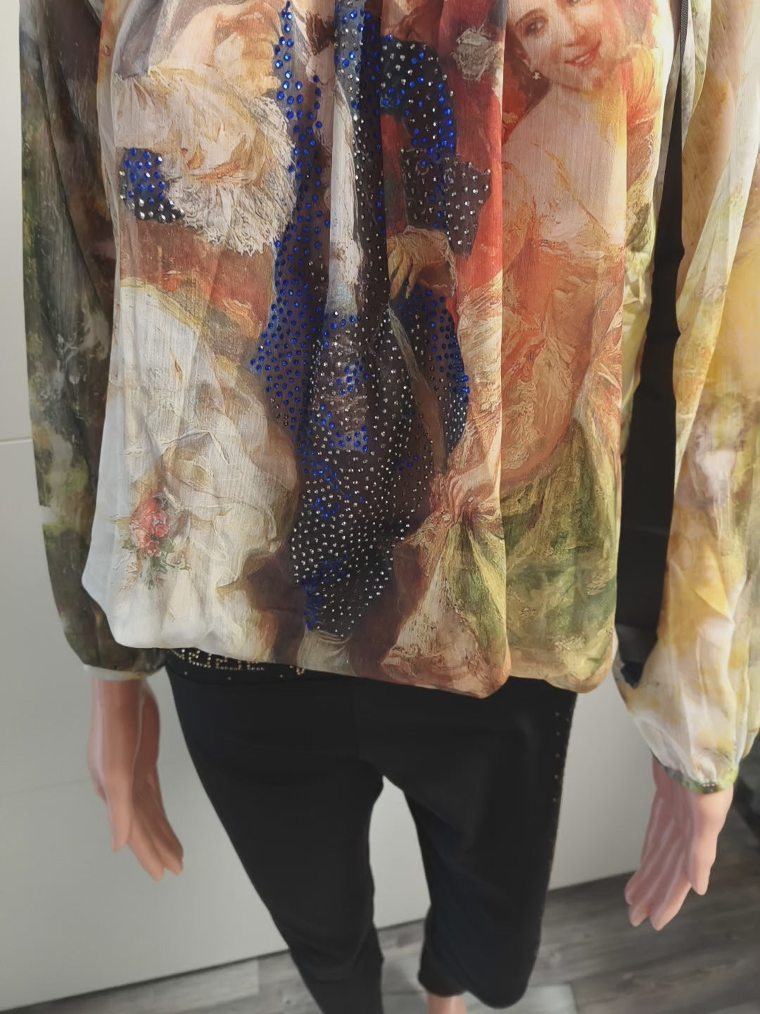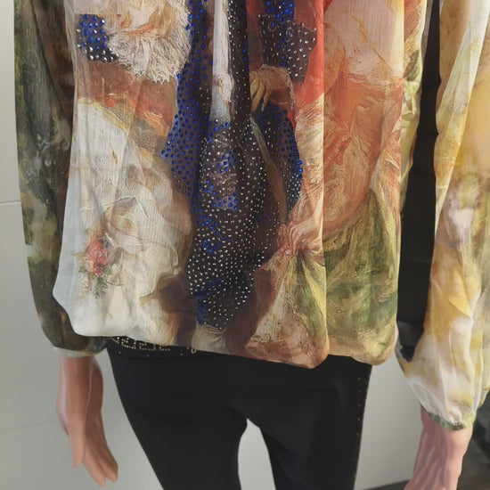 Die Bluse hat ein Zauberhaft schönen Druck und ist mit vielen Strasssteinen versehen.