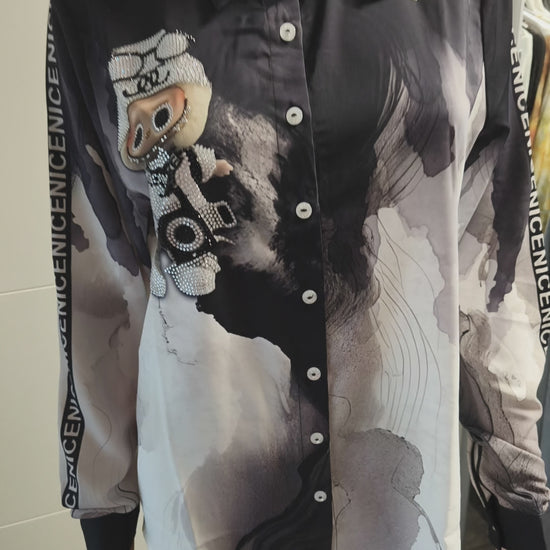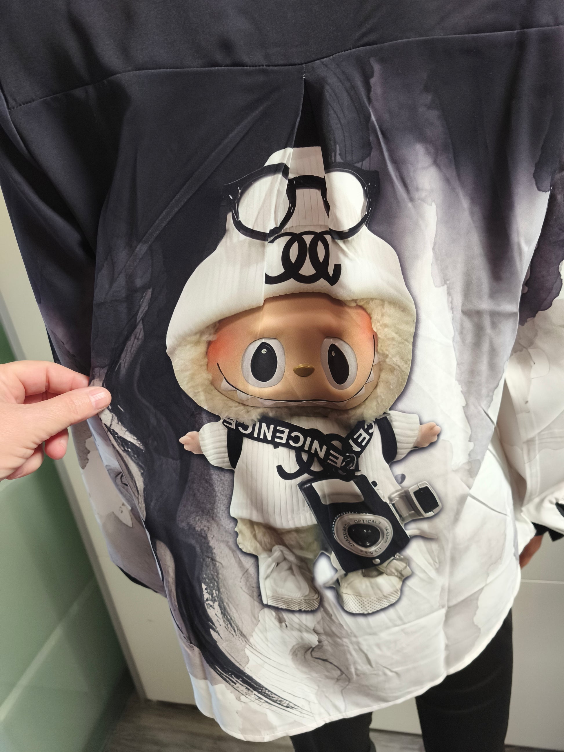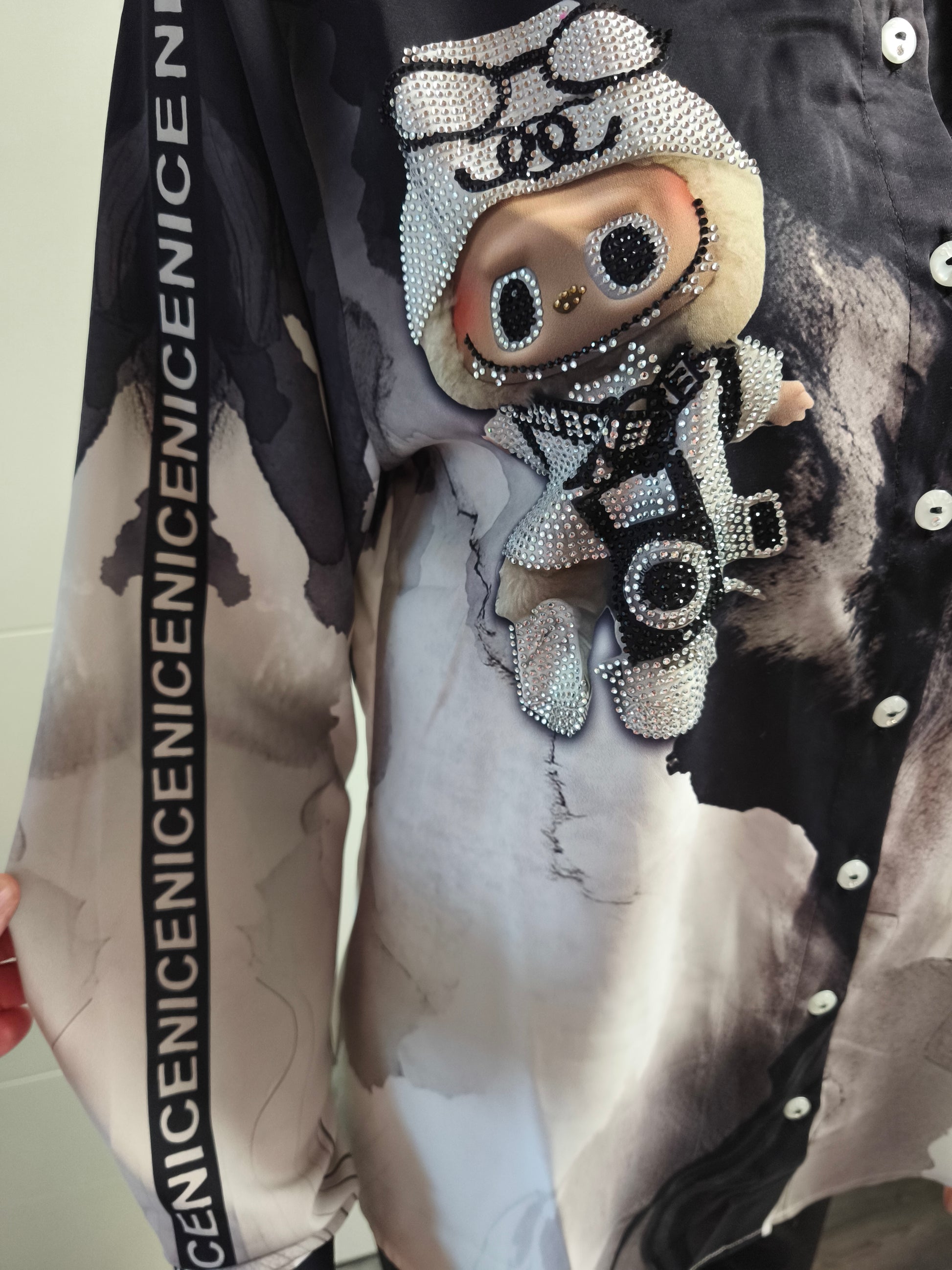 Hier habe ich sehr eine sehr schöne Bluse aus dem Hause von Missy. Die Bluse hat einen Druck um die ganze Bluse , sowie einen Schriftzug als Druck an den Ärmeln. Vorn ist ein kleiner Labubu der mit Strass Steinen versehen wurde, ein richtiger Hingucker.