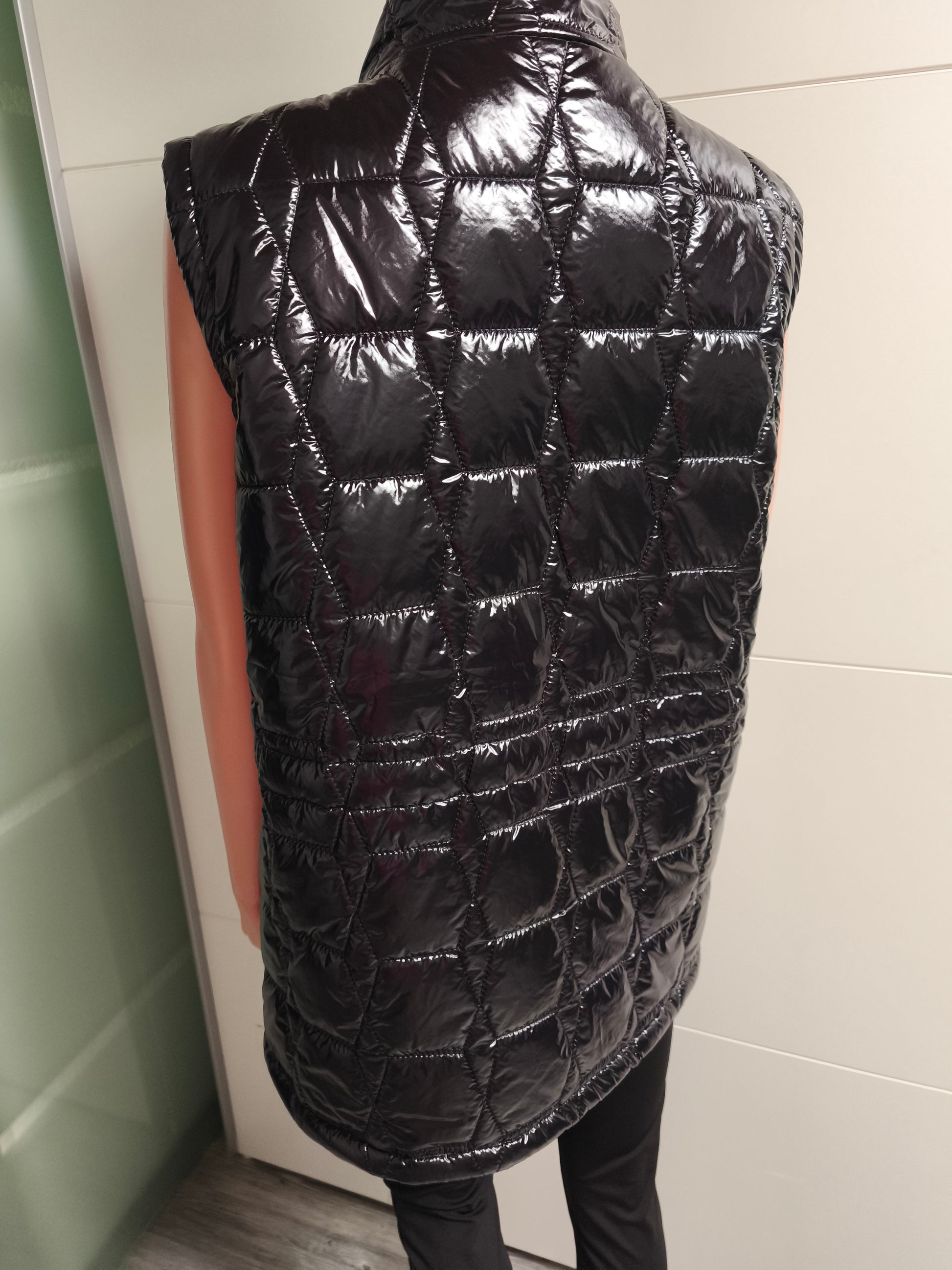 Die Weste ist leicht aber gefüttert und abgesteppt. Sie hat vorn 2 Taschen und Zugband zum enger stellen. Die Weste wird mit einem Reißverschluss und einer Knopfreihe verschlossen und ist über mit funkelnden Strass und Glitzersteinen versehen, welches auch das Logo hervorhebt.