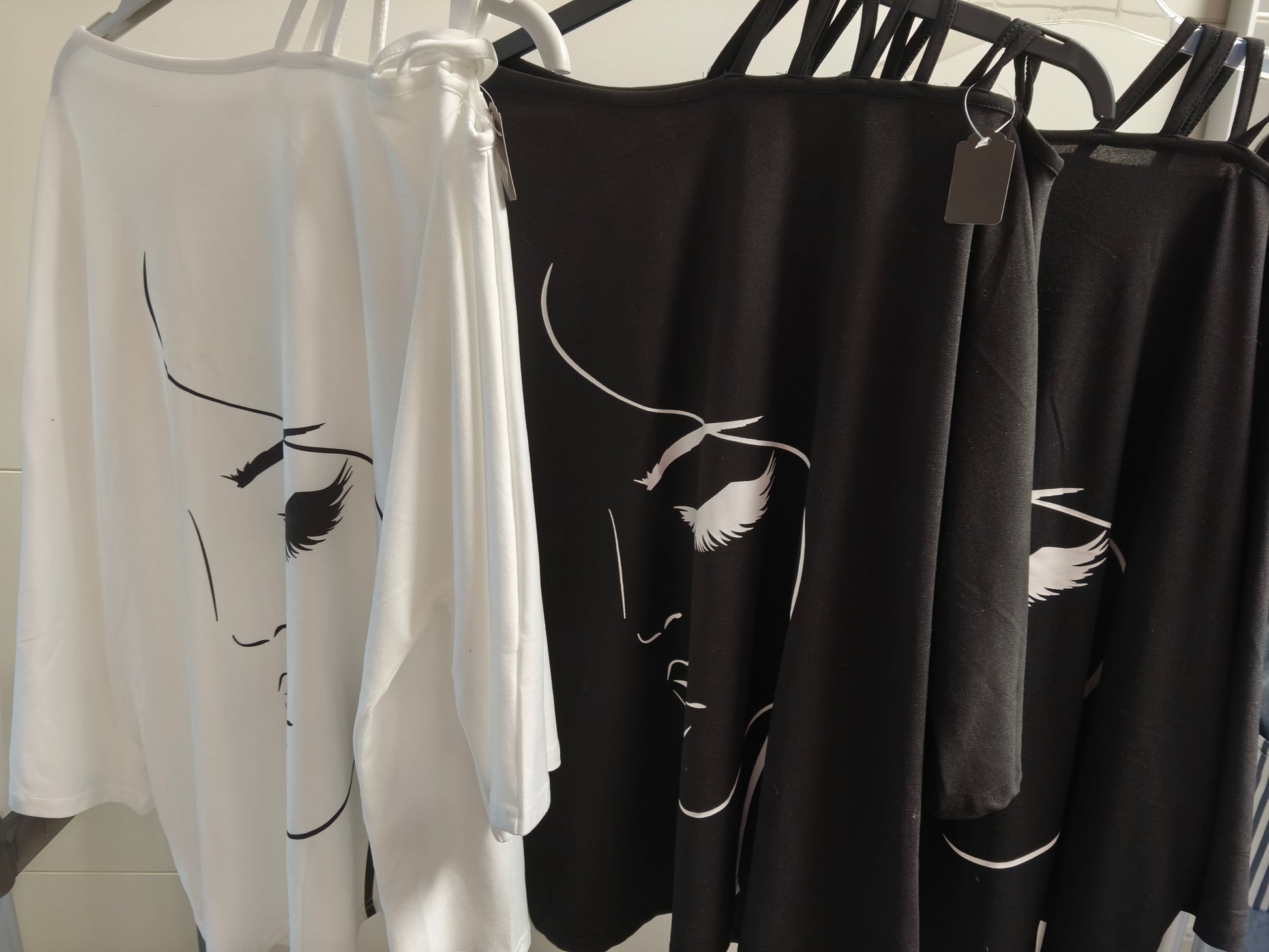Vorn ist ein Druck von einer Frau zu sehen.