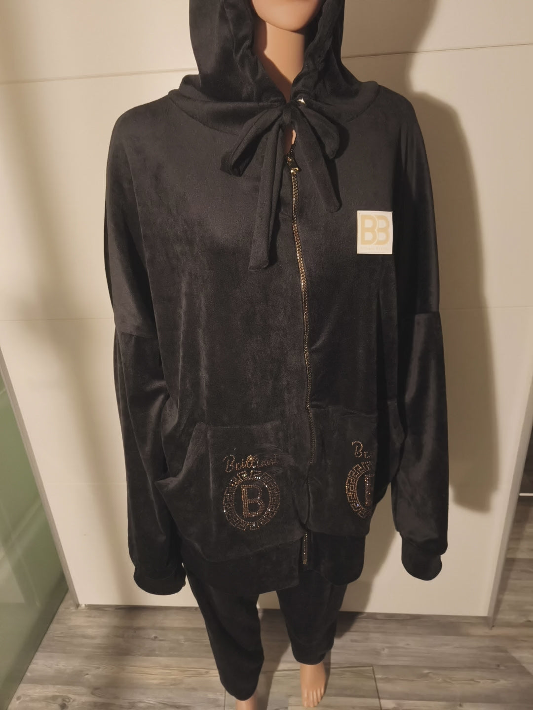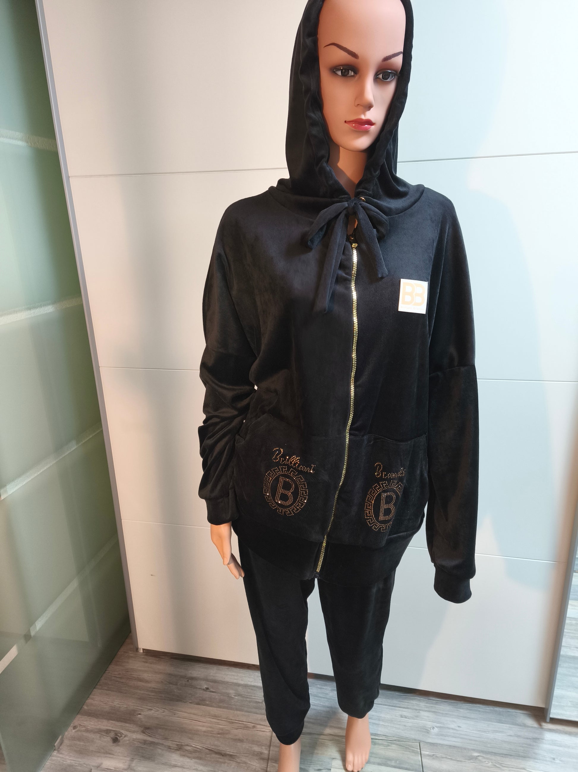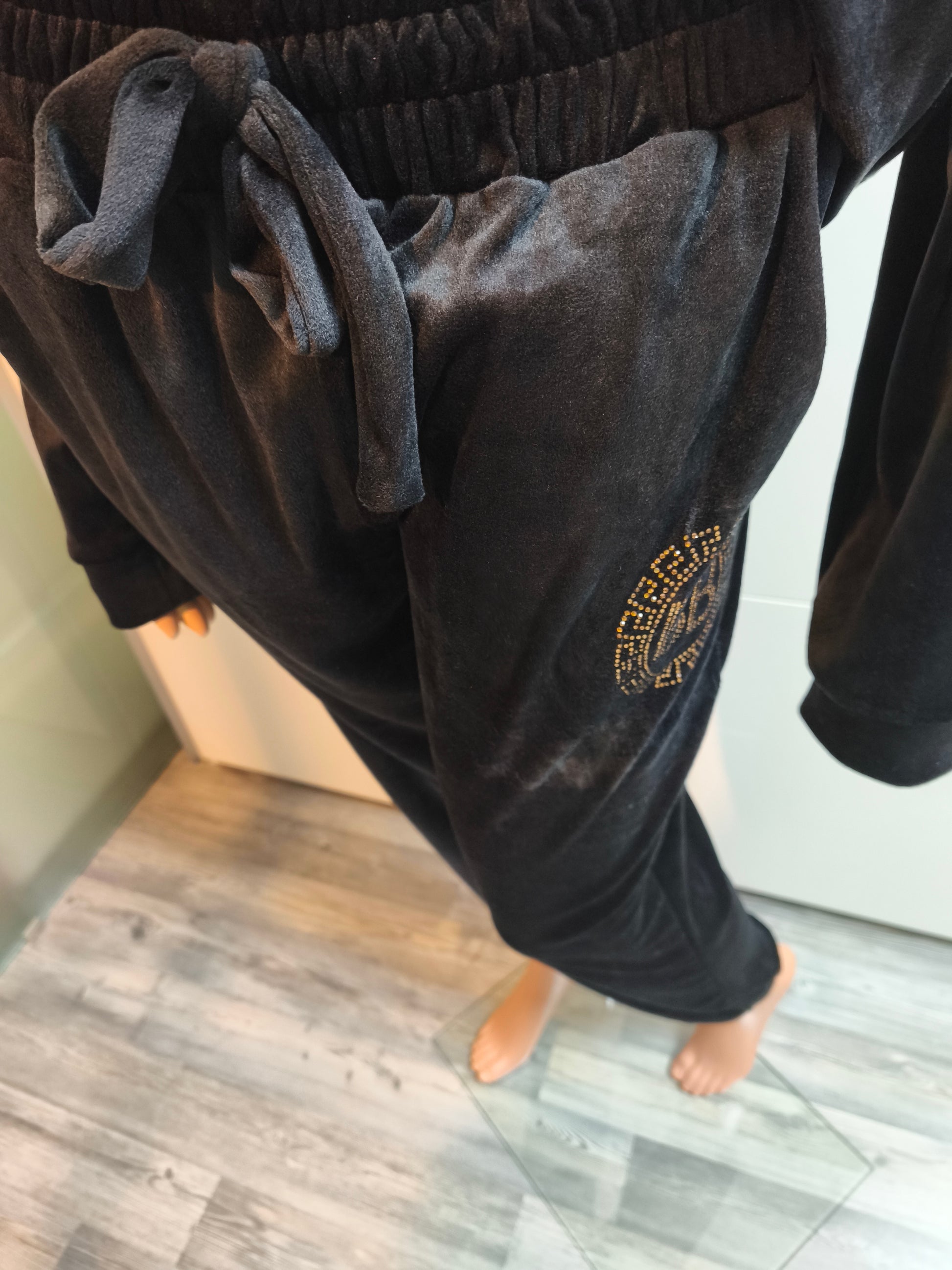 So wie die Jacke als auch die Hose haben aus Strasssteinen besetztes Markenlogo/Muster aufgeklebt und ein Markenlogo aufgenäht.