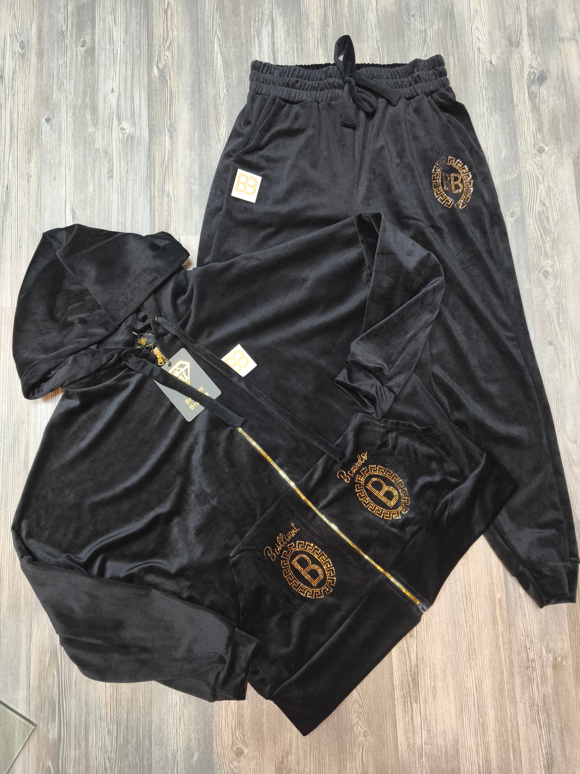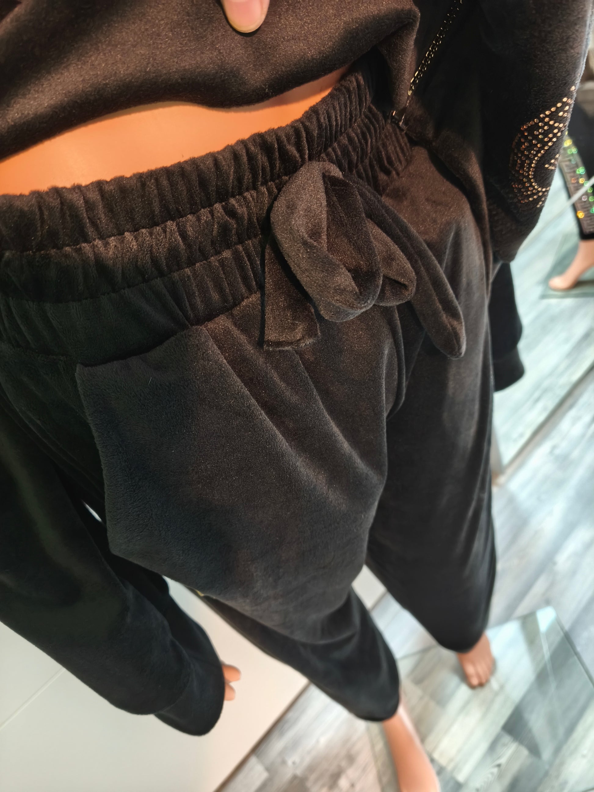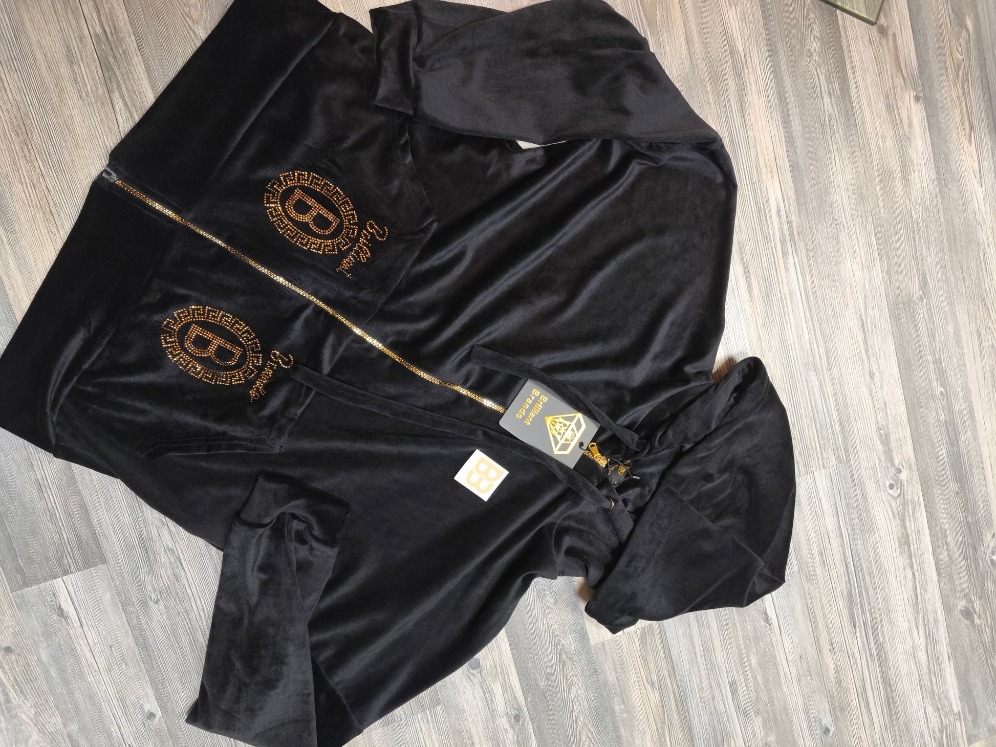 So wie die Jacke als auch die Hose haben aus Strasssteinen besetztes Markenlogo/Muster aufgeklebt und ein Markenlogo aufgenäht.