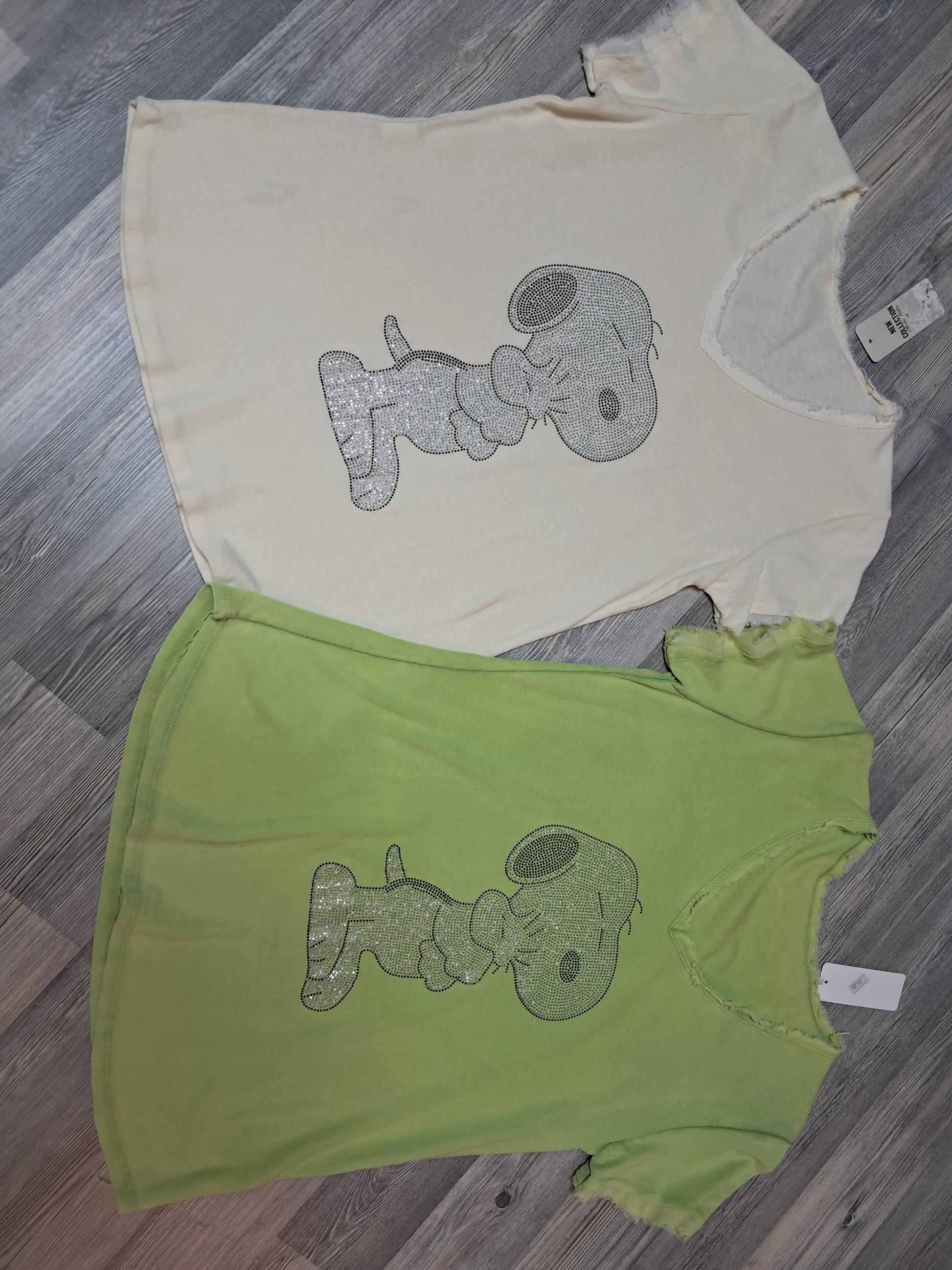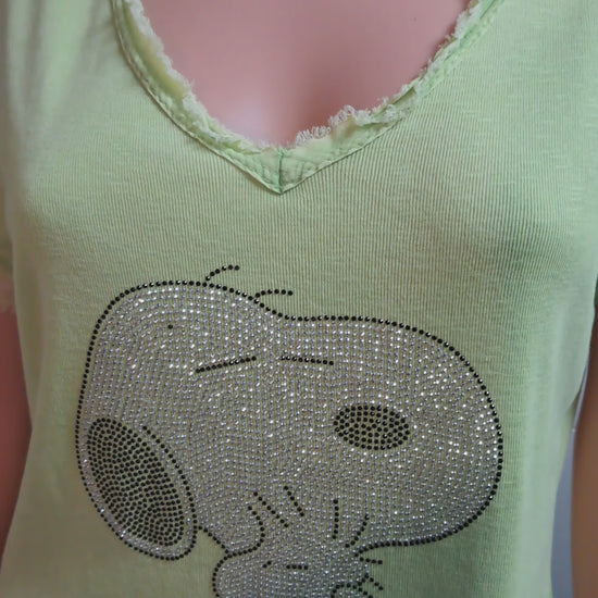 Snoopy Shirt mit Silbernen/Schwarzen Strasssteinen vorn , was dann ein Snoopy erscheinen lässt.