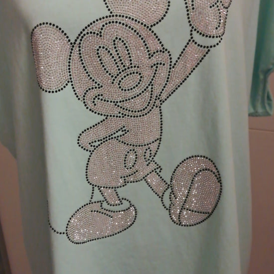 90% Baumwolle T-Shirt in Mint mit großen Strass Maus Motiv.