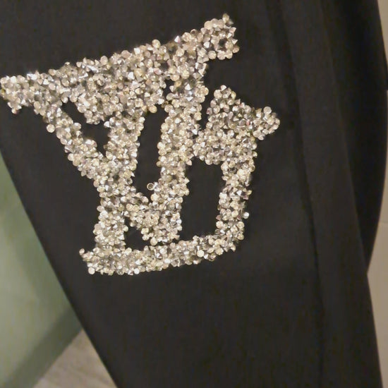 Leichte Stretch Hose mit LV Glitzer vorn , seitlichen Taschen und hinten auch Taschen.