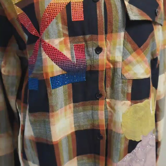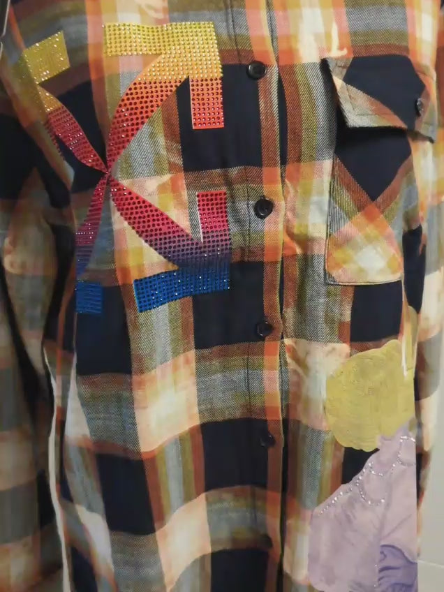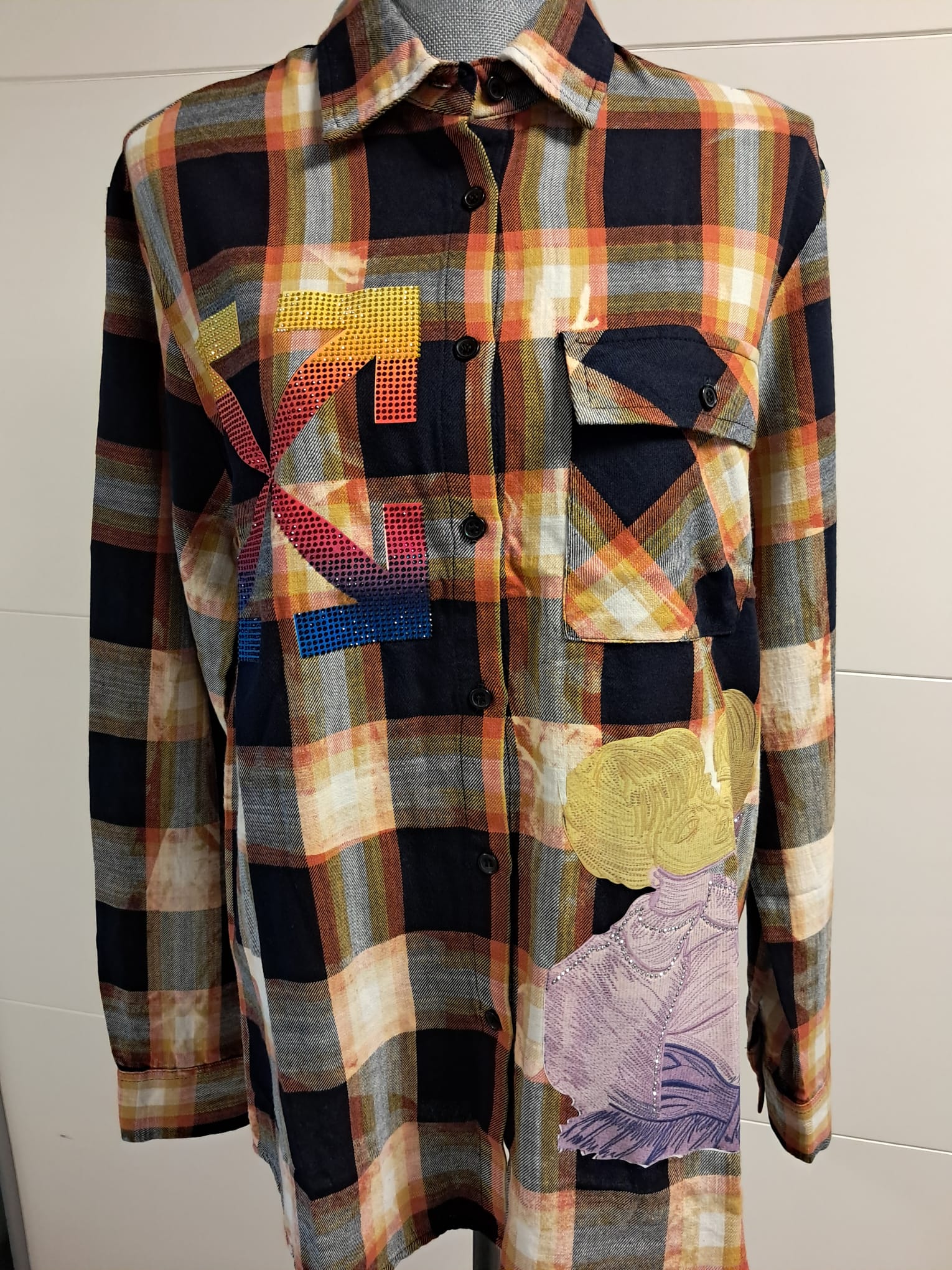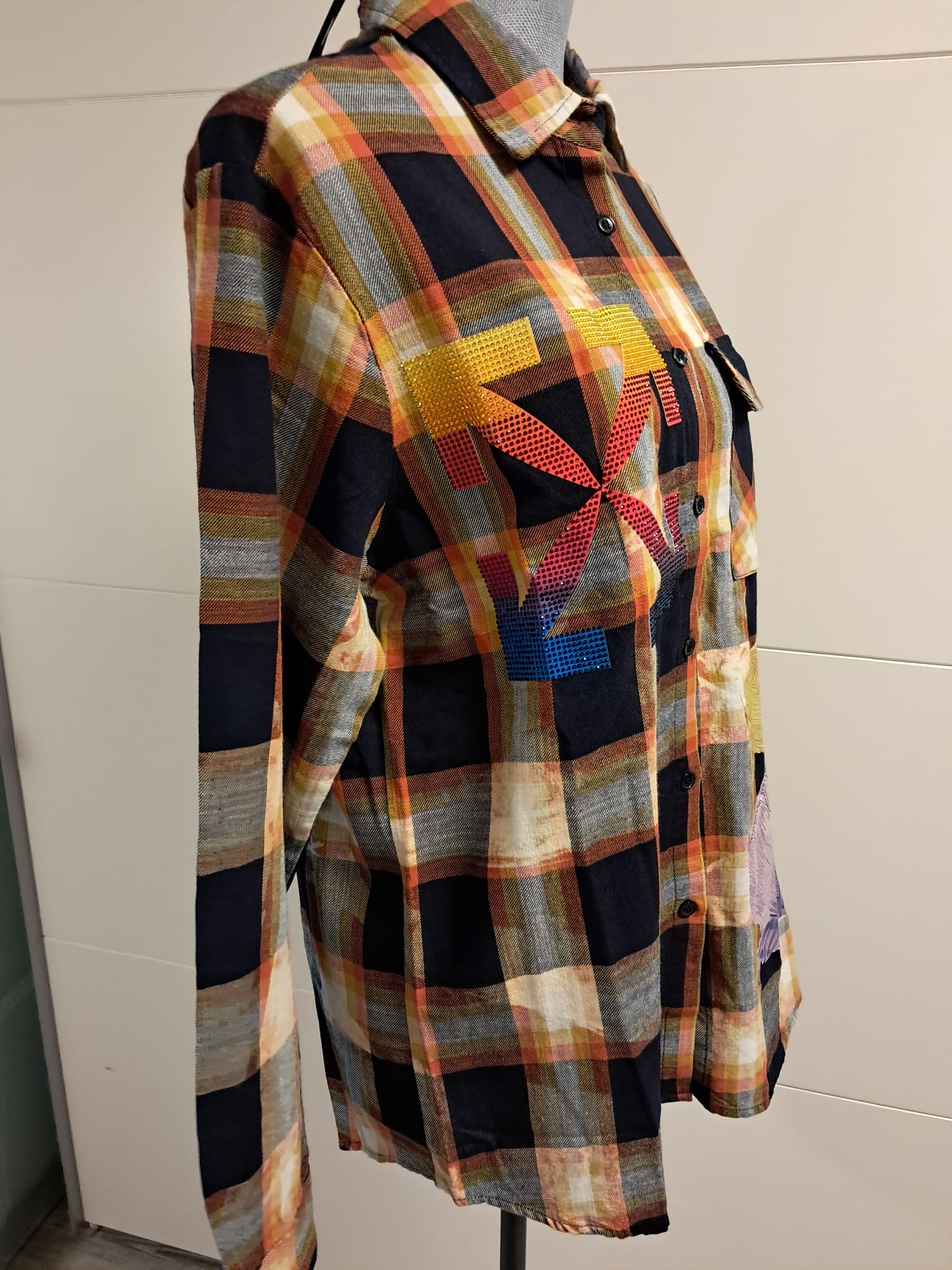 Schönes farbiges Karo Hemd mit Strasssteinen und Druck Motiv .